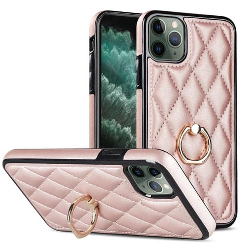 Funda para Teléfono iPhone 11 Pro Max Rhombic PU Cuero con Soporte para Anillo (Oro Rosa)