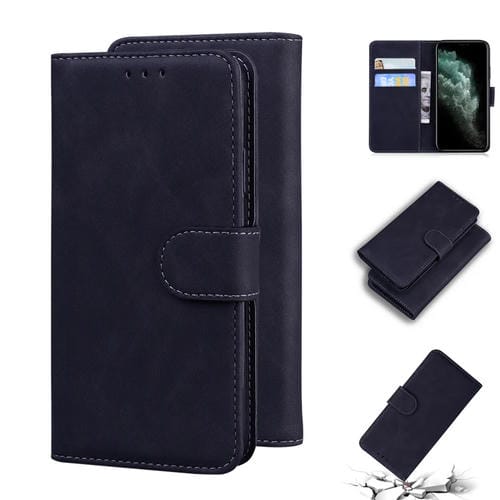 Funda de Cuero para iPhone 11 Pro Max Skin Feel Pure Color con Tapa (Negro)
