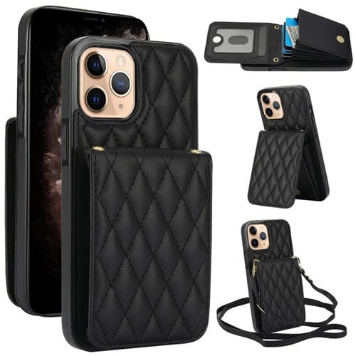 Funda para Teléfono Ym015 para iPhone 11 Pro Max con Bolsa para Tarjeta Rfid Rómbica Cruzada (Negro)