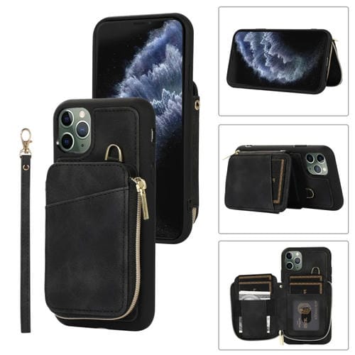 Funda para Teléfono iPhone 11 Pro Max Zipper Card Bag Contraportada (Negro)