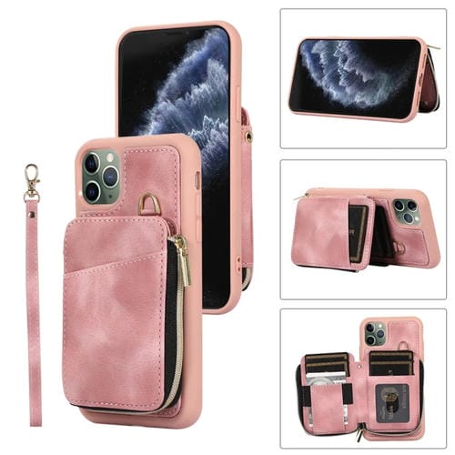 Funda para Teléfono iPhone 11 Pro Max Zipper Card Bag Contraportada (Rosa)
