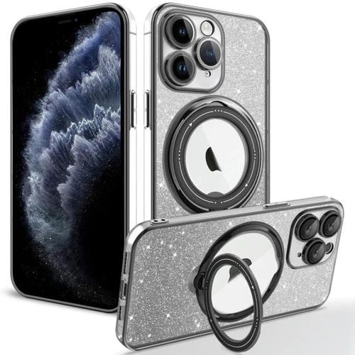 Estuche para Teléfono iPhone 11 Pro Rotación Magsafe Holder TPU con Brillo Degradado (Negro)