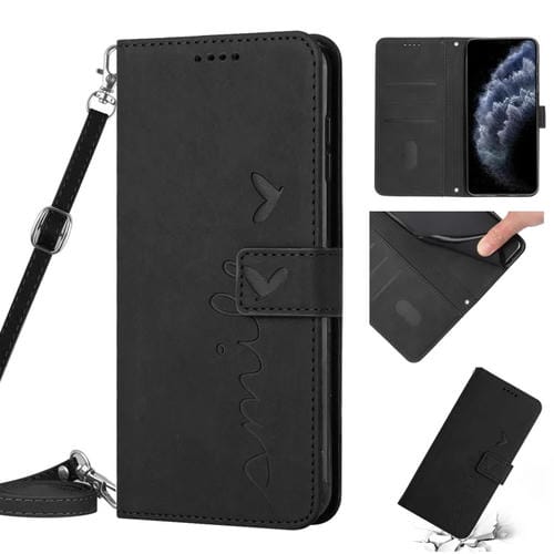 Funda de Cuero para Teléfono iPhone 11 Pro Skin Feel Heart Pattern con Cordón (Negro)