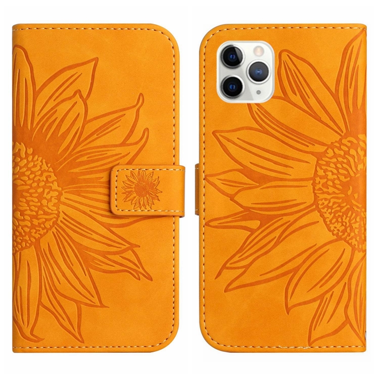 Funda Flip de Cuero para iPhone 11 Pro Skin Feel Sun Flower Pattern con Cordón (Amarillo)