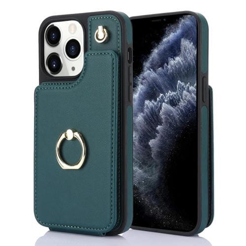 For iPhone 11 Pro YM005 Skin Feel Card Bag Phone Case with Long Lanyard (Green)