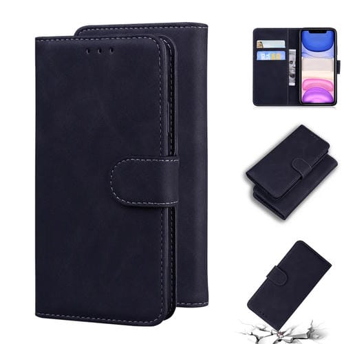 Funda para iPhone 11 Skin Feel Pure Color Flip de Cuero (Negro)