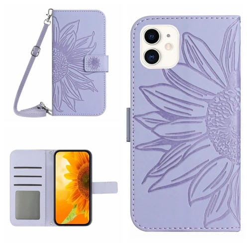 Funda de Cuero para iPhone 11 Skin Feel Sun Flower Pattern Flip con Cordón (Púrpura)