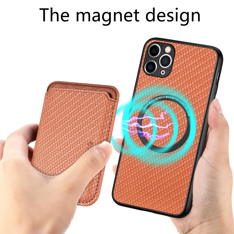 Funda Magnética para Teléfono iPhone 11 Cuero Fibra de Carbono Magsafe (Marrón)