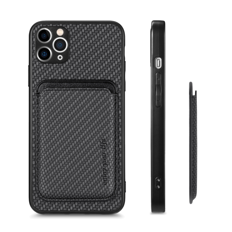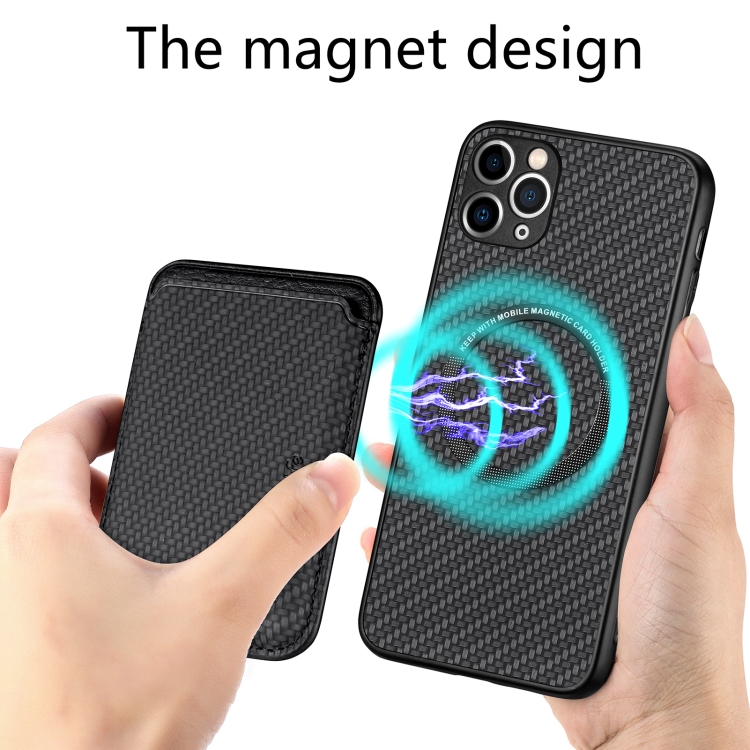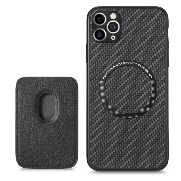 Funda para Teléfono iPhone 11 Tarjeta Cuero Fibra de Carbono Magsafe (Negro)