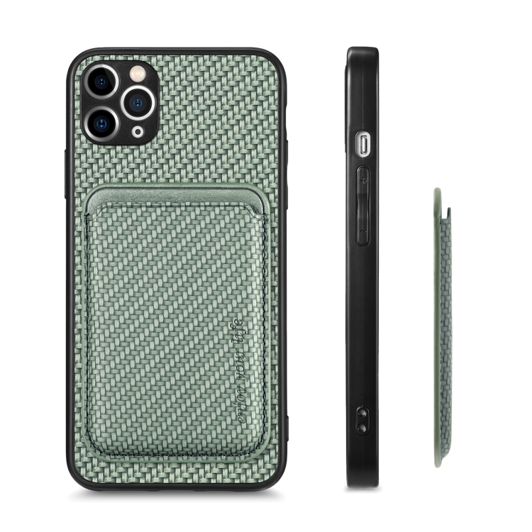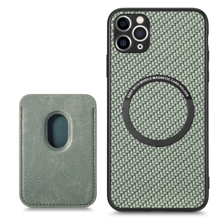 Funda para Teléfono iPhone 11 Cuero Fibra de Carbono Magsafe Magnética (Verde)