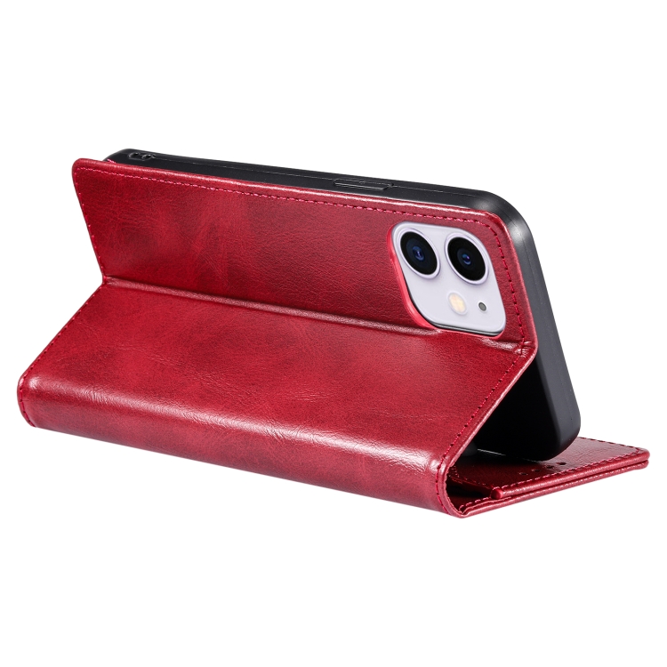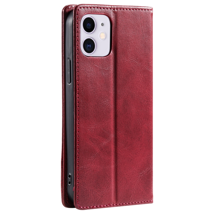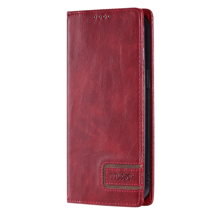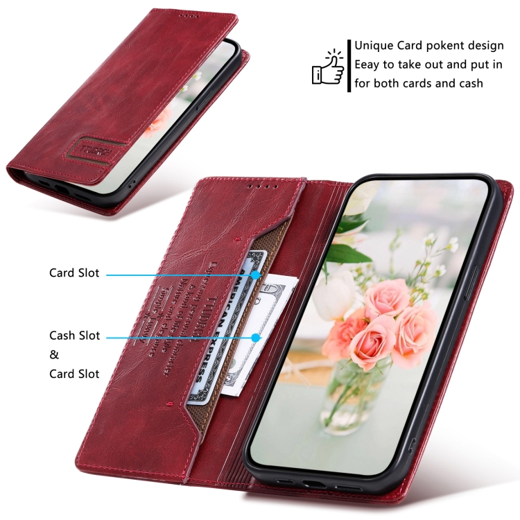 Funda de teléfono Ttudrch para iPhone 11 con protección RFID cuero magnético textura retro (Rojo)