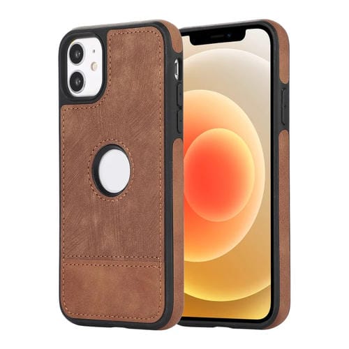 Funda para iPhone 12/12 Pro Empalme Costura Caja de Teléfono de PU con Recorte (Marrón)