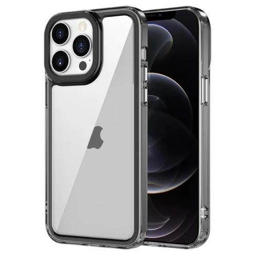Estuche para Teléfono iPhone 12/12 Pro Acrílico Transparente + TPU a Prueba de Golpes (Negro Transparente)