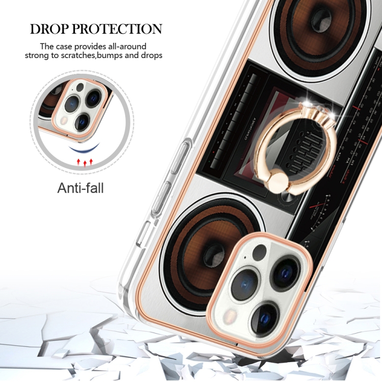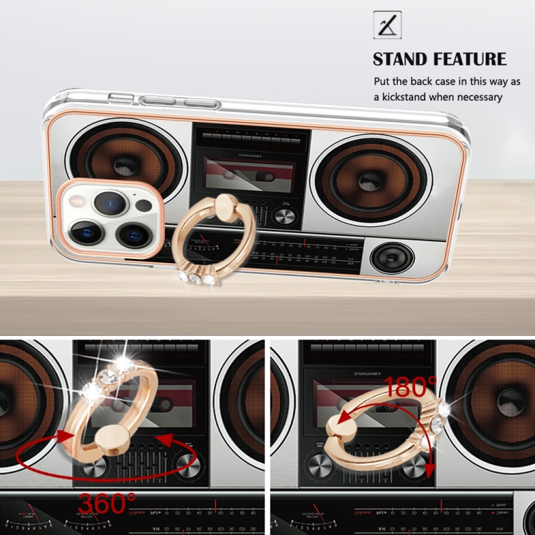 Estuche para teléfono iPhone 12/12 Pro IMD doble cara galvanoplastia con soporte para anillo (Radio Retro)