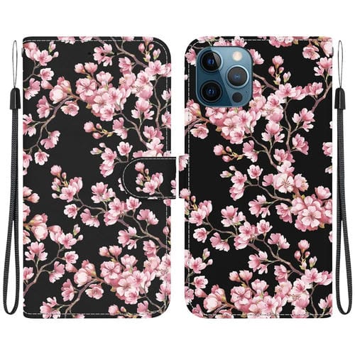 Funda para Teléfono iPhone 12/12 Pro Cuero Dibujo Coloreado Textura Cristal (Flor de Ciruelo)