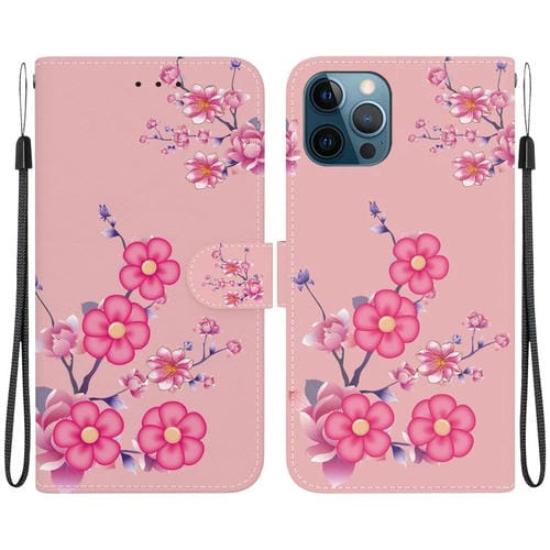 Funda para Teléfono iPhone 12/12 Pro Cuero Dibujo Coloreado Textura Cristal (Flores de Cerezo)