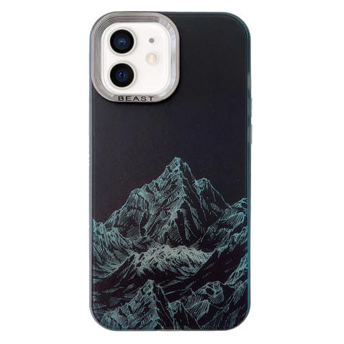 Estuche para Teléfono iPhone 12 2 En 1 con Marco de Galvanoplastia Aurora (Montañas Nevadas Negras)
