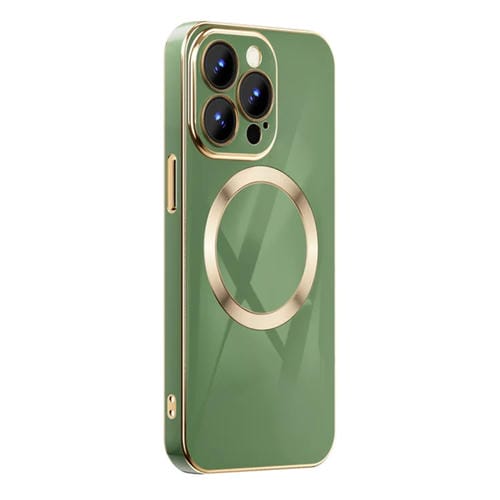 Caja de teléfono magnética Magsafe para iPhone 12 6D chapada en oro (Verde)