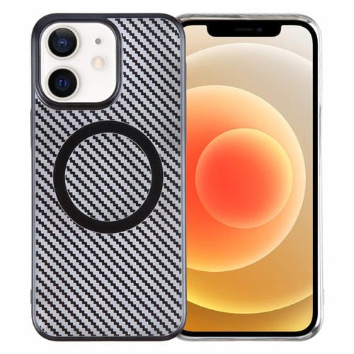 Caja de Teléfono para iPhone 12 PC Magsafe Transparente Fibra de Carbono (Negro Estrellado)