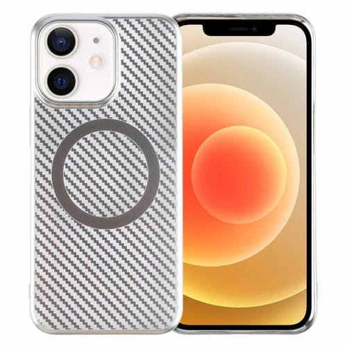 Caja de Teléfono para iPhone 12 PC Magsafe Transparente con Fibra de Carbono (Starlight Silver)