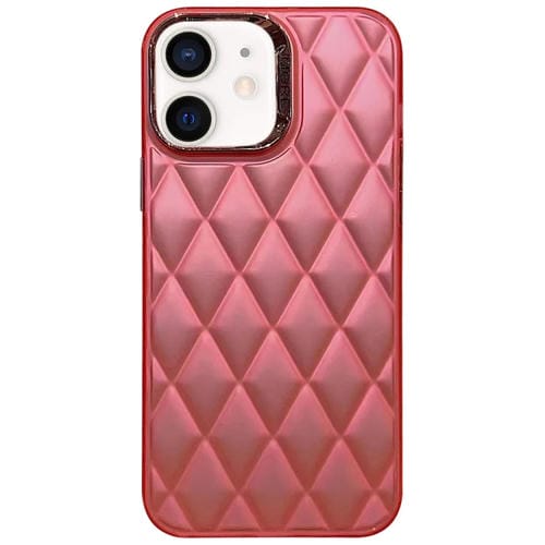 Caja híbrida para teléfono iPhone 12 PC con Galvanoplastia de Rombo 3D TPU (Rojo Rosa)