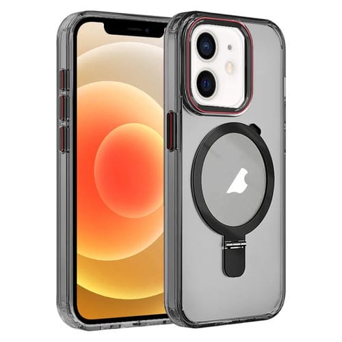 Funda para Teléfono iPhone 12 Crystal TPU Hybrid PC Magsafe Holder (Negro Transparente)