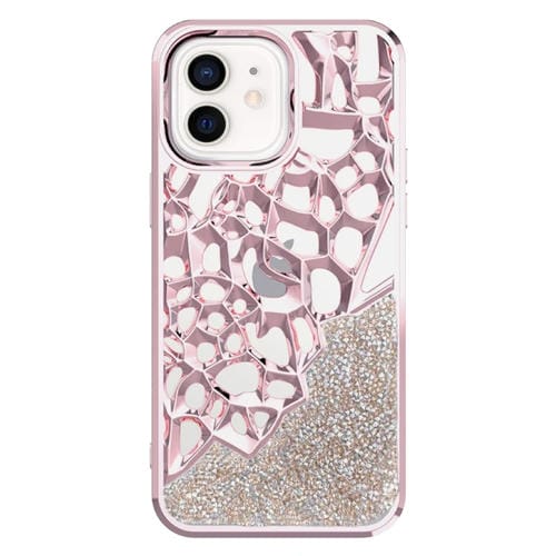 Estuche para Teléfono TPU Galvanizado iPhone 12 Disipación de Calor Hueca Estilo Diamante (Rosa)