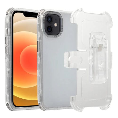 Estuche para teléfono iPhone 12 Frosted PC + TPU con clip trasero (Negro Transparente)