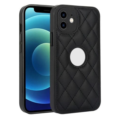 Funda para Teléfono iPhone 12 Contraportada de Cuero Rómbico (Negro)