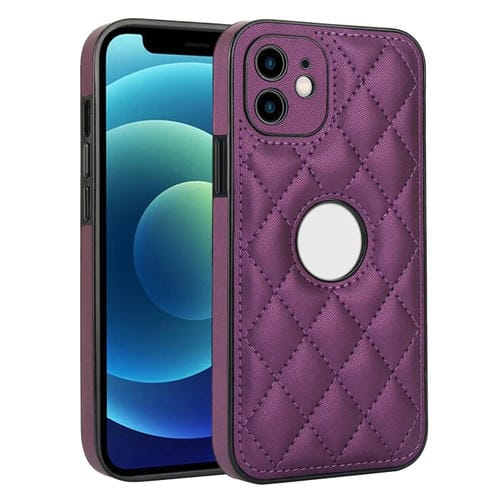 Funda para Teléfono iPhone 12 Contraportada de Cuero Rómbico (Púrpura Oscuro)