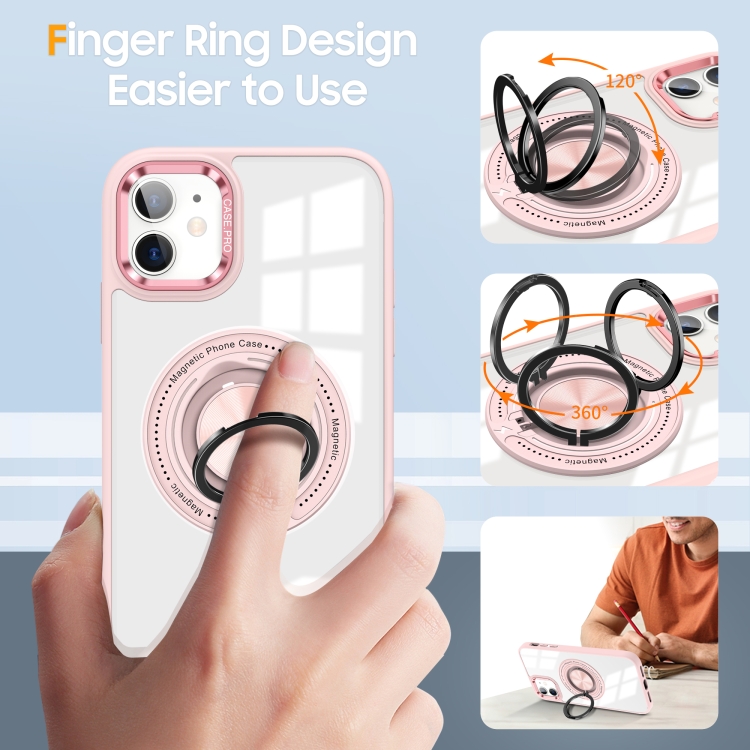 Funda para Teléfono iPhone 12 Soporte Anillo Giratorio Magnético (Rosa)