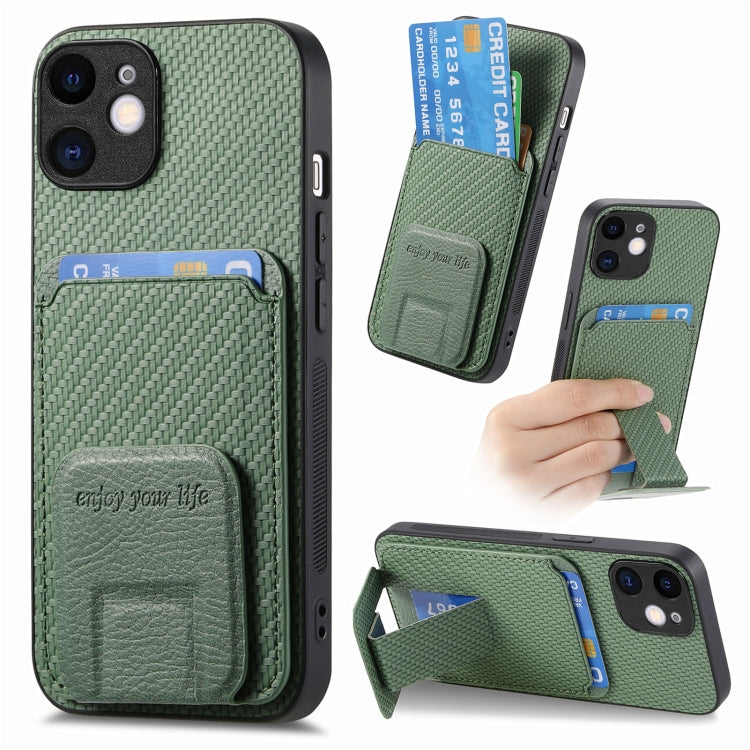 Funda para Teléfono iPhone 12 con Soporte Plegable y Bolsa para Tarjetas Fibra de Carbono (Verde)