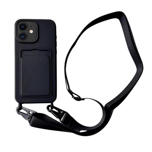 Funda para Teléfono iPhone 12 Silicona Líquida Ranura para Tarjeta y Cordón (Negro)