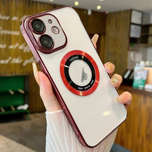 Funda para teléfono iPhone 12 Magsafe PC Galvanizada Transparente (Rojo Vino)