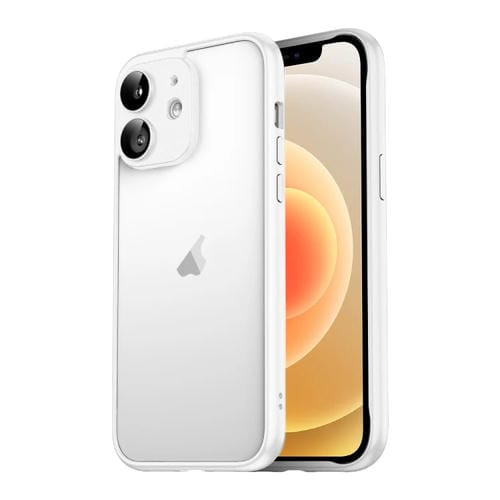Marco de Borde Puro para iPhone 12 Macaron PC con Película de Vidrio para Lentes (Blanco)