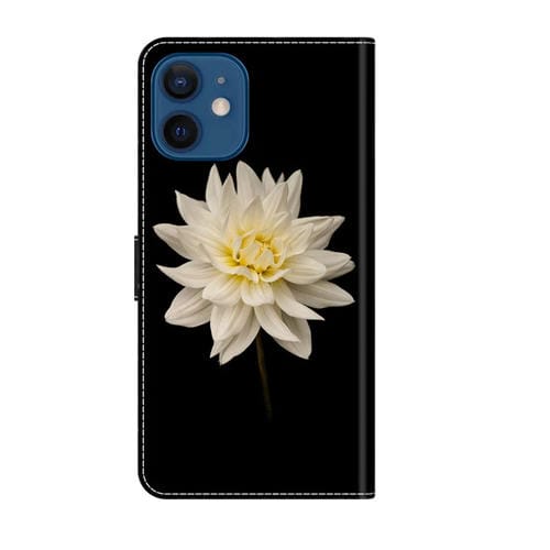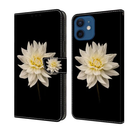 Funda Protectora de Cuero iPhone 12 Mini 13 Mini Crystal 3D a Prueba de Golpes (Flor Blanca)