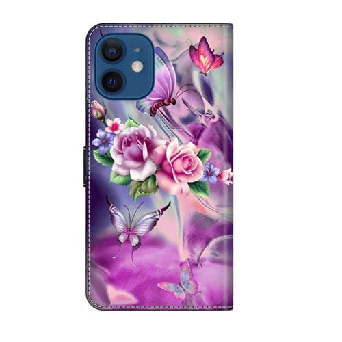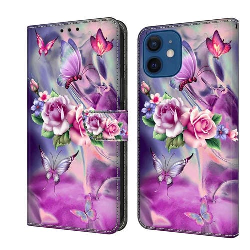 Funda Protectora de Cuero iPhone 12 Mini 13 Mini Crystal 3D a Prueba de Golpes (Mariposa)