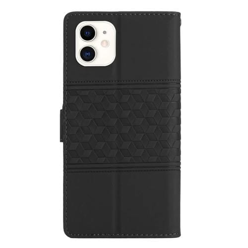 Caja de Teléfono para iPhone 12 Mini Cuero Sensación de Piel En Relieve con Cordón (Negro)