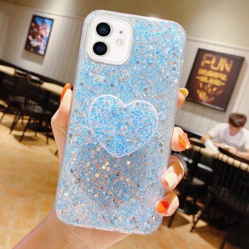Caja del Teléfono TPU Epoxi iPhone 12 Mini Soporte Corazón Lentejuelas Estrelladas (Azul)