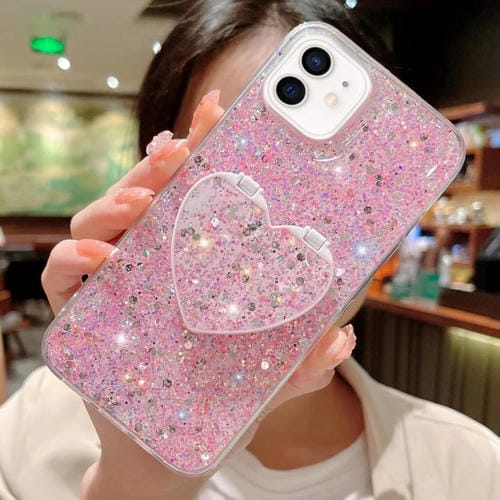 Funda para iPhone 12 Mini TPU Epoxi con Soporte Espejo Lentejuelas Estrelladas (Rosa)