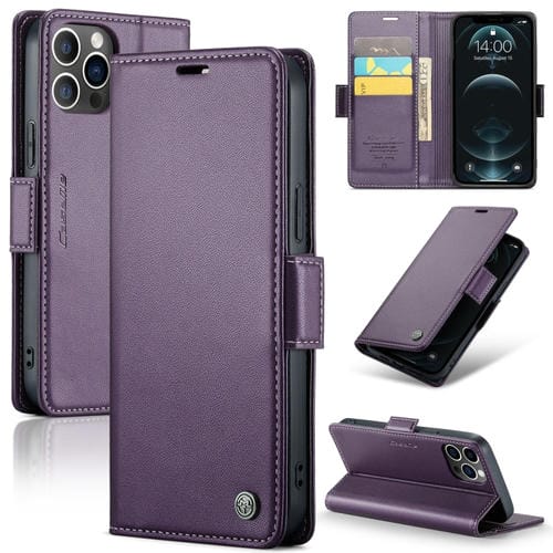 Funda para iPhone 12 Mini Caseme 023 Mariposa Hebilla Litchi Textura Rfid Cuero Antirrobo (Púrpura Nacarado)