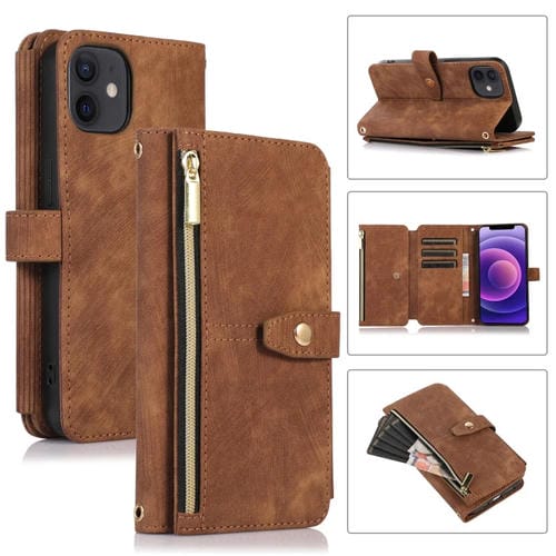 Funda para iPhone 12 Mini Dream 9-Card Wallet Zipper Bag Cuero (Marrón)
