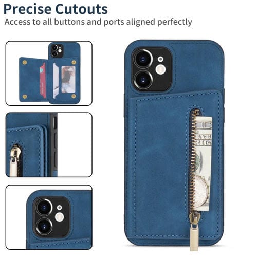 Funda para iPhone 12 Mini con Cremallera y Tarjetero (Azul)