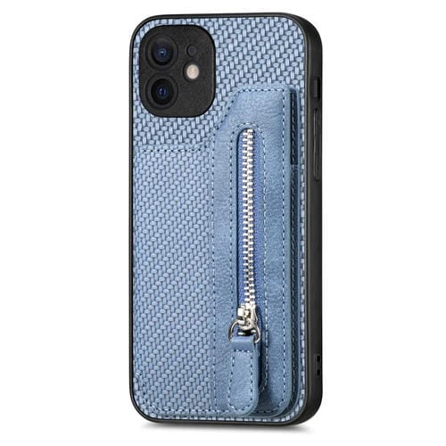 Funda de teléfono para iPhone 12 Mini con cremallera y tapa horizontal de fibra de carbono (Azul)