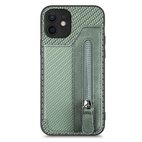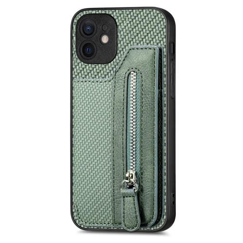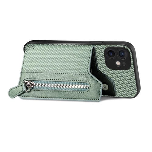 Funda de Teléfono iPhone 12 Mini con Cremallera y Tapa Horizontal de Fibra de Carbono (Verde)