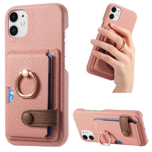 Funda para Teléfono iPhone 12 Mini Borde de Aceite Cuero Litchi Anillo Trasero y Tarjeta (Rosa)