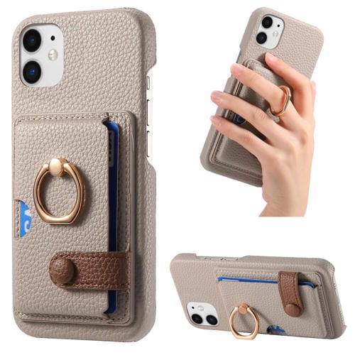 Funda para Teléfono iPhone 12 Mini Borde de Aceite Cuero Litchi Parte Posterior de Tarjeta (Caqui)