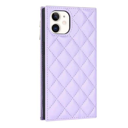 Funda de Cuero para iPhone 12 Mini Grid Texture con Lanyard y Cremallera (Púrpura)