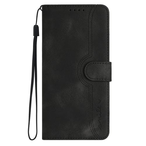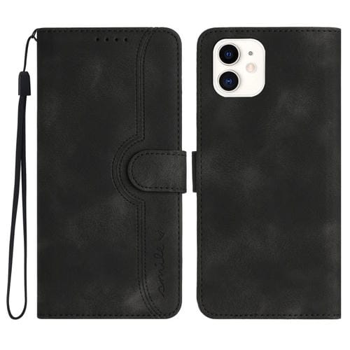 Funda para iPhone 12 Mini Skin Feel Leather con Patrón de Corazones (Negro)