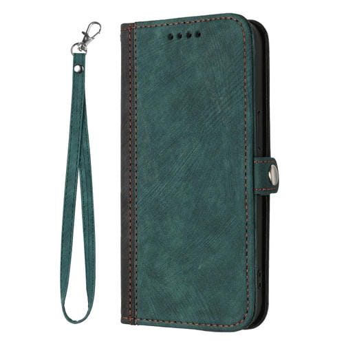 Funda de Cuero para iPhone 12 Mini con Hebilla Lateral Doble Pliegue y Correa de Mano (Verde Oscuro)